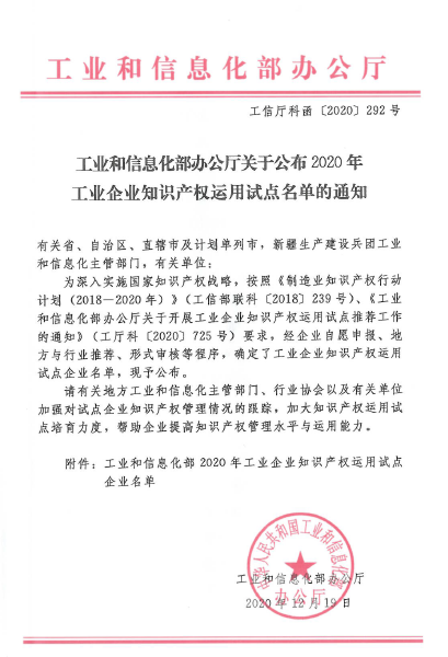 近日,工業(yè)和信息化部公布了2020年工業(yè)企業(yè)知識(shí)產(chǎn)權(quán)運(yùn)用試點(diǎn)企業(yè)名單,康輝醫(yī)療科技(蘇州)有限公司名列其中。