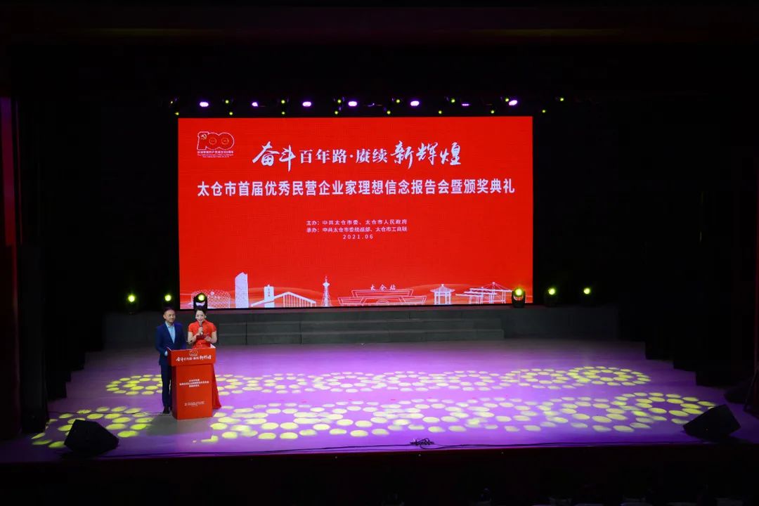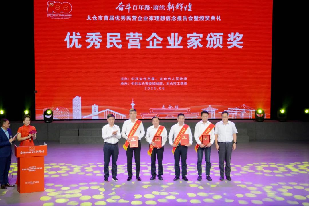 儀式上,太倉(cāng)市人民政府授予康輝科技董事長(zhǎng)陳利忠先生“太倉(cāng)市優(yōu)秀民營(yíng)企業(yè)家”稱號(hào)。